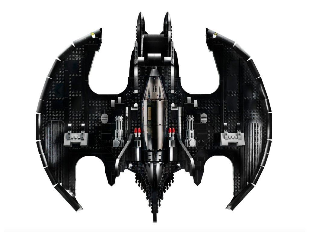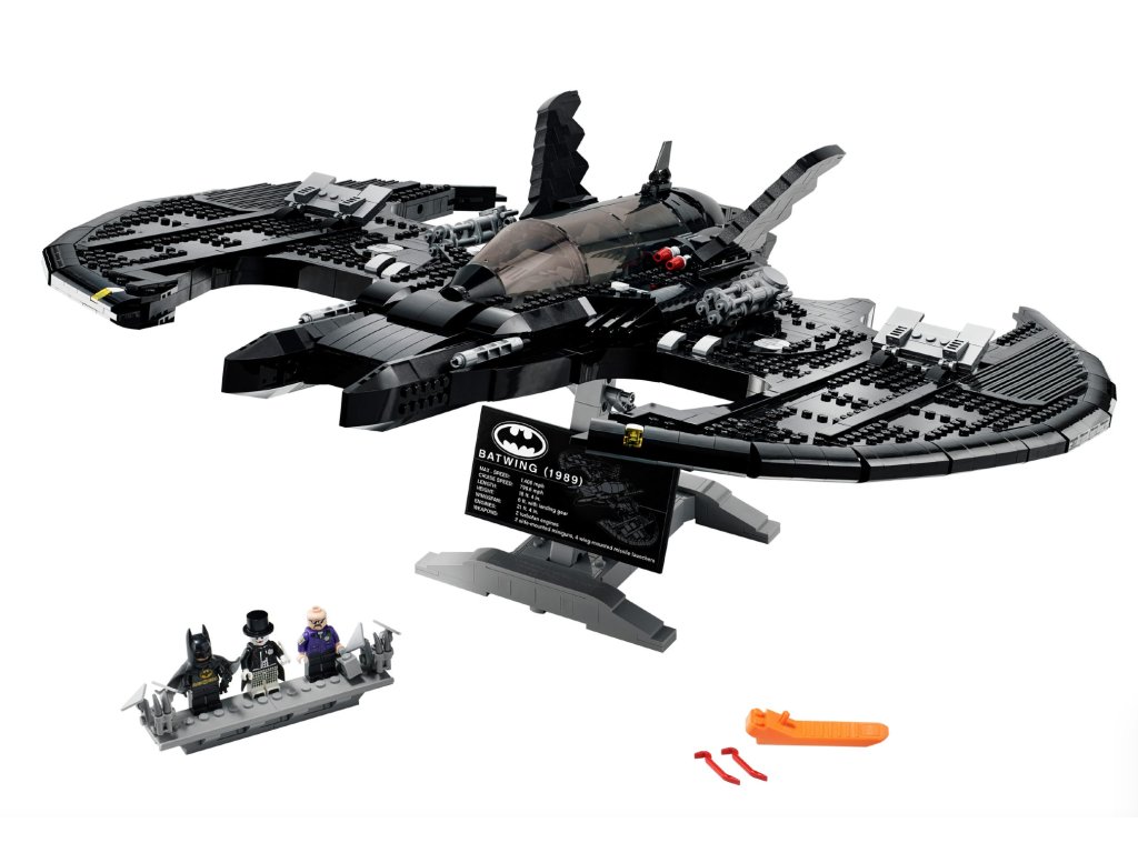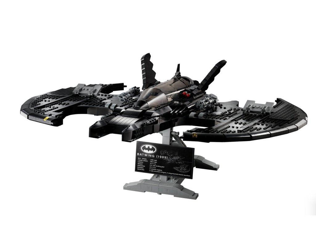 Kultovní styl Batwingu z filmu BATMAN™ z roku 1989 doplňuje robustní podstavec, jmenovka a 3 minifigurky: BATMAN, JOKER™ a jeho poskok s kazeťákem.